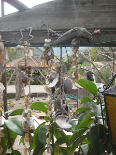 Will graciously invited us in for a tour...and it was like nothing we'd ever seen... A hillside mansion constructed of recycled materials, sea glass, bones, shells...you name it. It was dreamlike...walking from room to room...peeking into each and every tiny space to reveal the treasures they contained. The most fab-U-lous windchimes made from driftwood, abalone, and old chandelier crystals.